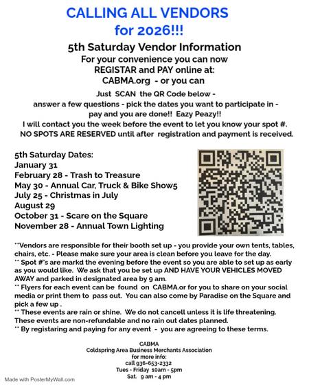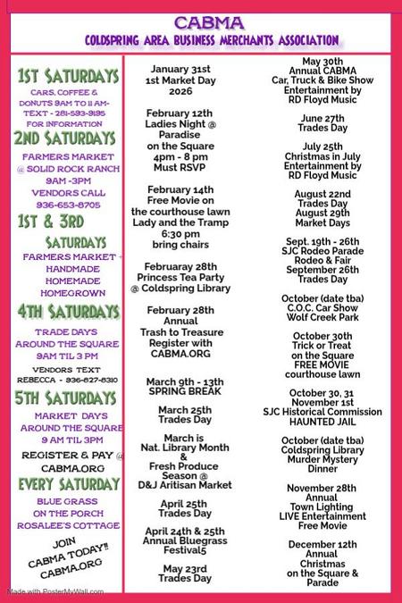CABMA, Coldspring Area Business & Merchants Association has been proudly making a difference in Coldspring for merchants and business owners for over eighteen years.
